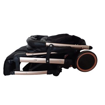Cadrul este din aluminiu, mecanism de pliere facil, tip carte, maner ajustabil pe inaltime. Cos incapator pentru bagaje. Cadru prevazut cu suport plastic pt sticla sau biberon.